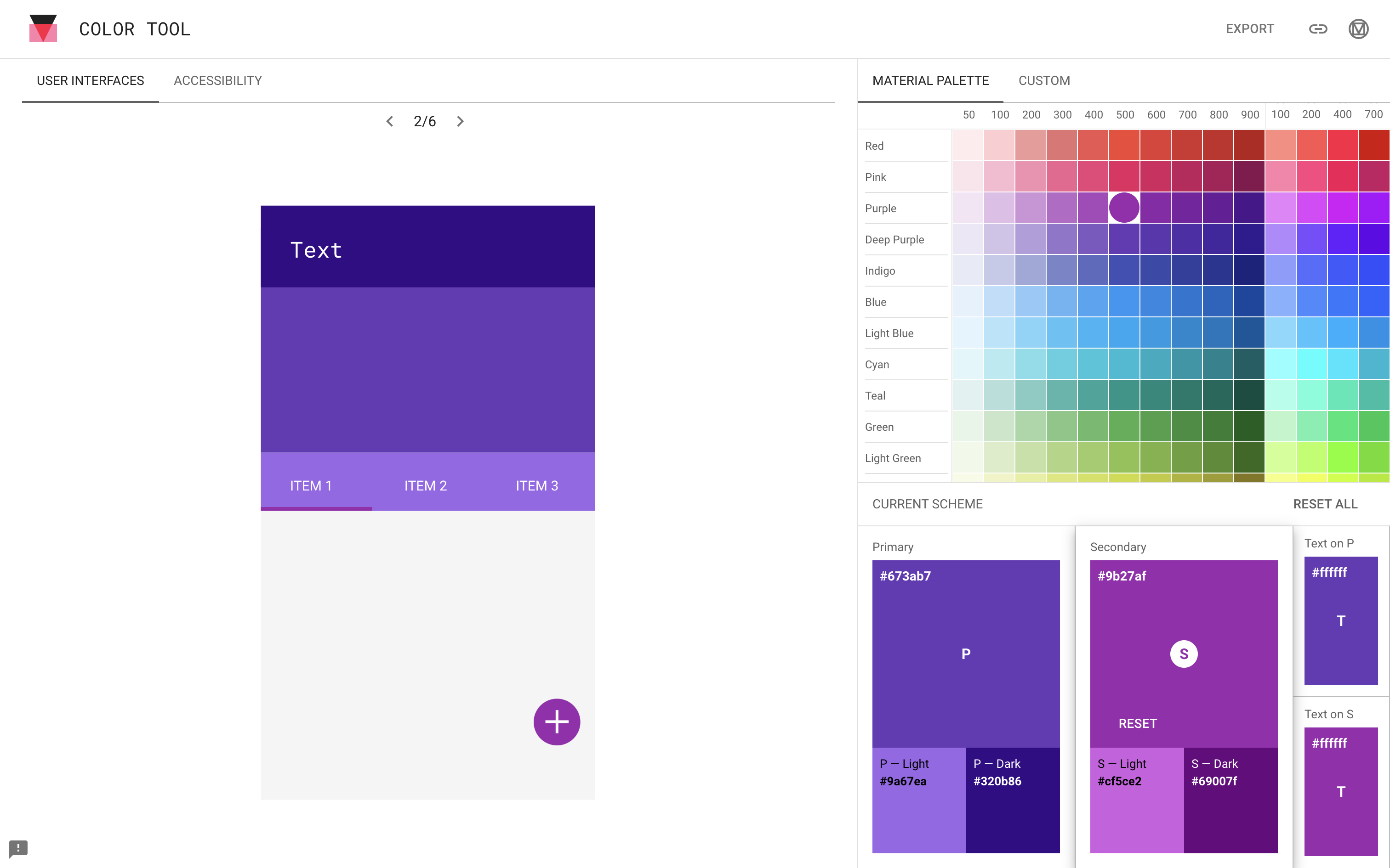 The first thing you'd need to do is select your primary, accent and tertiary colors. The material.io Color Tool provides a useful visual preview of what your primary and accent colors would look like on an application interface.